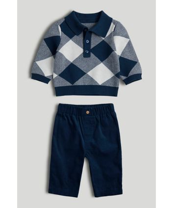 Navy Trousers and Knitted Polo Outfit